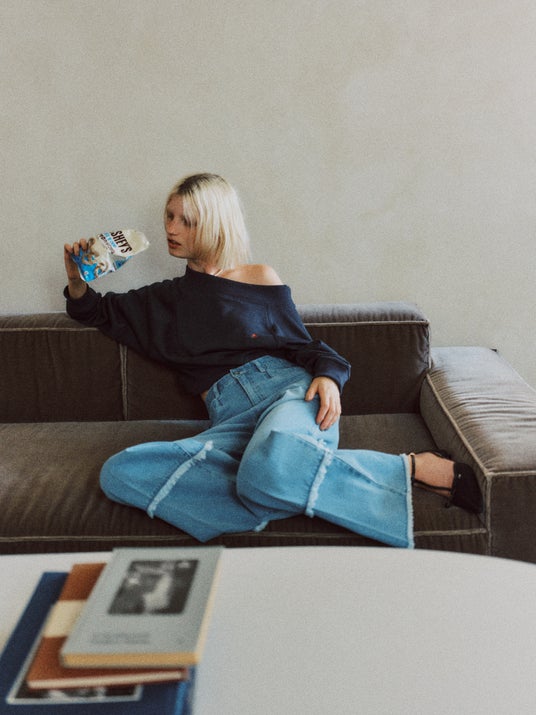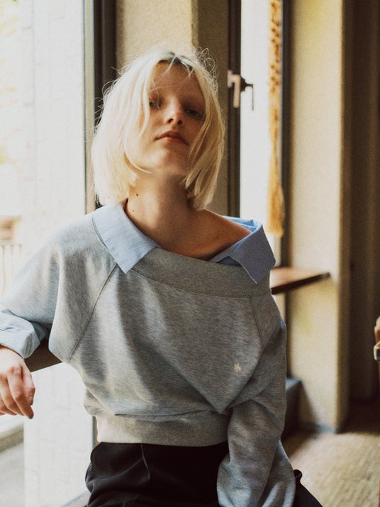 トラッドな裏毛トップスを、ボートネックにもワンオフショルダーにもなる女性らしいシルエットにアレンジ。柔らかい素材で着心地も抜群。