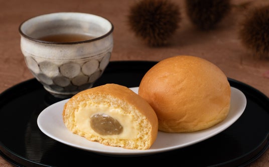 しっとり、ふんわりとした柔らかなパン生地の中には、八天堂自慢のカスタードに栗の風味を加えた特製クリームを入れ、さらに中心には丹波栗クリームを贅沢に使用しました。