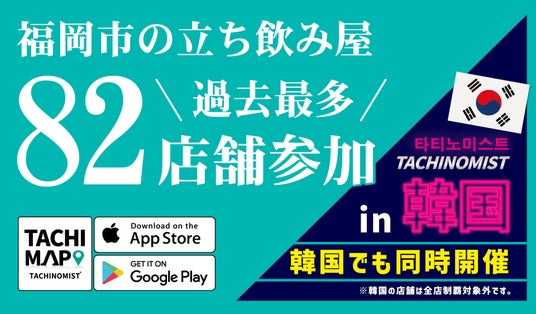株式会社Thinkingfor(本社:福岡市 / 代表取締役社長:落水 研仁)は、82店舗が参加する日本最大級の立ち飲みイベント「TACHINOMIST(以下タチノミスト)」を、2025年10月31日(金)から11月16日(日)の17日間にわたり開催します。