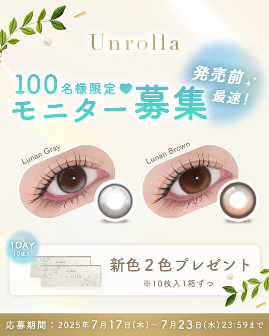 コンタクトレンズメーカー「フロムアイズ株式会社(本社:東京都千代田区)」は、2025年7月30日(水)1DAYカラーコンタクトレンズブランド『Unrolla (アンローラ)』をrefrear公式ショップから2色限定で先行発売いたします。