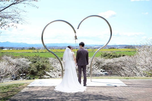 高尾さくら公園で満開の桜に囲まれた新郎新婦(イメージ)