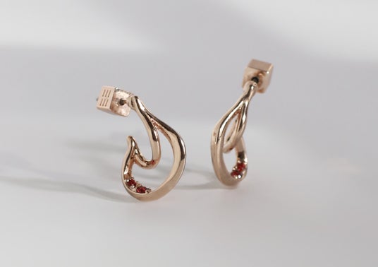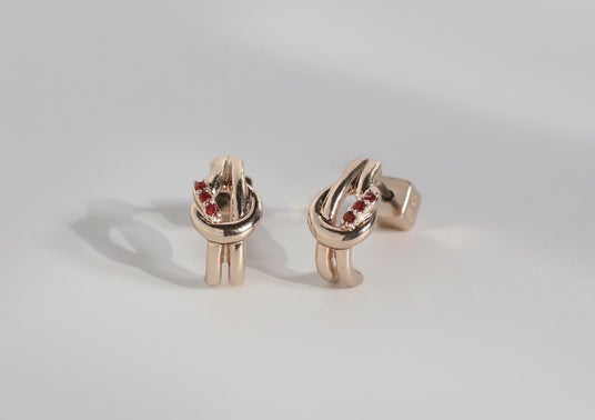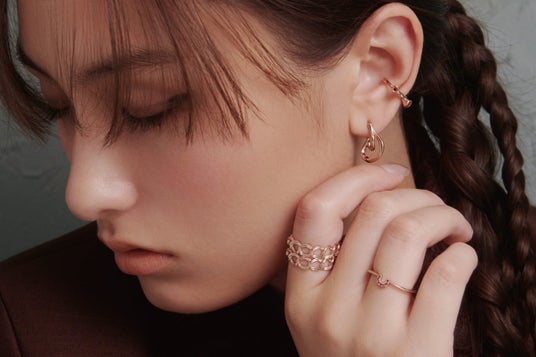 ニュアンスラインのピアスやイヤーカフ、チェーンやノットを取り入れたカジュアル使いにもおすすめなラインナップ。レッドのストーンで表現するロマンチックで、エネルギーを感じさせる印象が、つける人そのものの魅力を引き出してくれる。