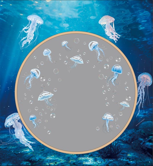 漂うクラゲと、窓の向こうに広がる風景の不思議な組み合わせを写真におさめることができます。