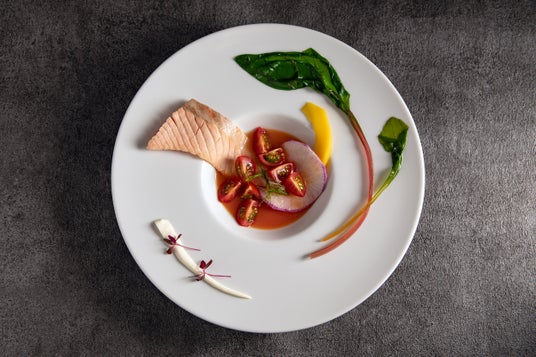 ( ノルウェーサーモンのミキュイ フレッシュトマトとブラッドオレンジのソース )