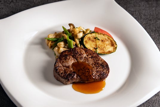 特選牛フィレ肉のステーキ ルビーポルト酒のソース