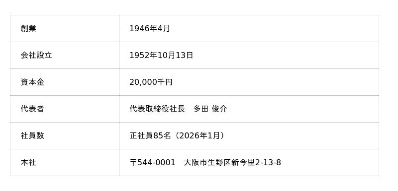 株式会社ダイヤは、今年創業80年の節目を迎えます。当社には、創業者の多田定男が提唱した「三味(さんみ)」の精神が今も深く根付いています。これは、見た目の美しさである「前味」、食べた瞬間の美味しさである「中味」、そして真心のこもった接客サービスを表す「後味」の三つを指し、現在も全スタッフがこの指針を共有し、日々の業務に励んでいます。伝統ある味を堅持しながら、三代目多田俊介のもとではIT化などの革新的な取り組みを推進。地域に根ざした「大阪のソウルフード」と「関西一のベーカリー」を目指して一歩ずつ着実に歩みを続けています。