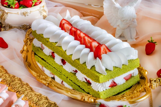 大天使からの贈り物ふわふわな食感の抹茶風味のスポンジと生クリーム、いちごが層になったケーキ。天使の翼をイメージして絞ったガナッシュが美しい荘厳なケーキです。