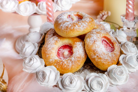 エンジェルズピローバターの芳醇な香りが漂うパン生地に、あっさりとしたクリームチーズ、いちごジャム、フレッシュいちごを乗せたパン系スイーツです。