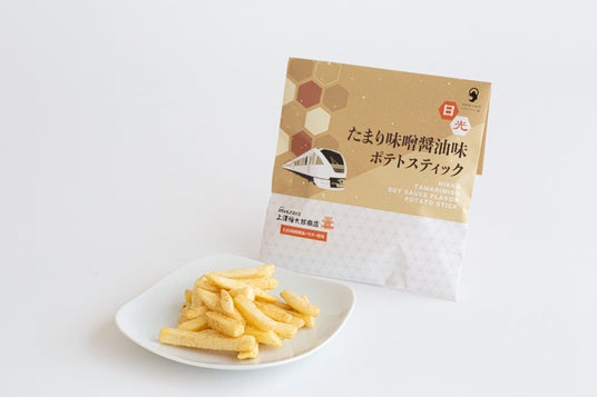 スペーシア Xの終点・日光の名を冠した「日光味噌」を造る、江戸時代からの醸造元上澤梅太郎商店の味噌を使ったフライドポテトを販売します。深みのある味噌のコクが、「スペーシア Xブロンド」との相性抜群です。
