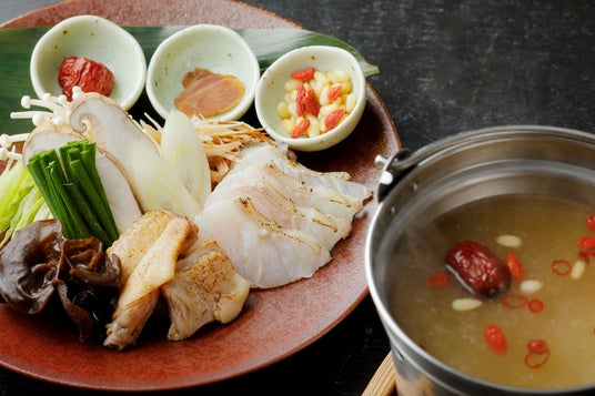 寒さが厳しくなる冬の季節に、薬膳の素材を活かした温もりを感じられる料理をご用意しました。旬を迎えるクエや紀の国みかんどりの手羽中を、ナツメ、クコの実、高麗人参などを用いた薬膳とともに味わう鍋は、滋味深い味わいが特徴です。また食事の締めには、お好みの薬味ダレでカスタムできる五穀粥もご提供。鶏と葱の薬味ダレは香ばしさが際立つしっかりとした味わい。白キクラゲと山芋の薬味ダレはやさしい口当たりで幅広い世代に好まれる一品となります。料理全体に香りや風味を活かした薬膳のエッセンスを取り入れ、五感で楽しむ冬の会席に仕上げました。