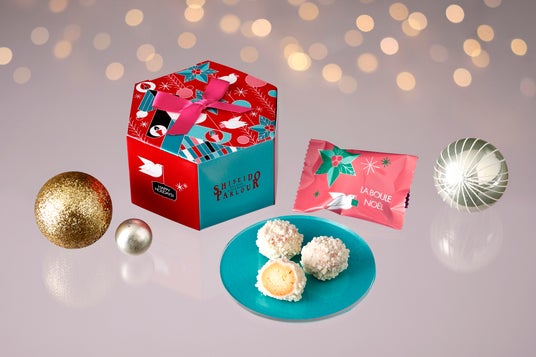 きらめく装飾やツリーと人々のざわめき。来たる祝福の日の準備のためのお出かけ。温かいワインを片手に談笑したり、オーナメントやオブジェを見繕ったり、子どもたちはわくわくを抑えきれず走り回ったり。おとぎの国に迷い込んだような、特別なお出かけに街は華やかな高揚感に包まれます。幸せを分かち合うクリスマスまでの楽しい期間、そしてとっておきのホリデーシーズンを、3種のフレーバーのクランチチョコレートとキューブショコラがセットになった「クリスマススイーツ」、そして軽やかでホロホロとした食感の「ラ・ブール ノエル」とともにお楽しみください。