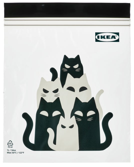 白と黒のネコが描かれたハロウィンデザインのフリーザーバッグ。子どもたちのパーティーやハロウィンで、スナックやキャンディを小さな子どもたちに配りたいときにぴったりです。
