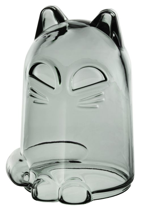 ダークグレーのガラスでできたネコの形のデコレーション。目、耳、しっぽ、前足が付いています。テーブルやシェルフの上はもちろん、窓際に置いてもおしゃれです。点灯したライトチェーンを中に入れると、ネコに怖い雰囲気をプラスできるので、ハロウィンの夜にぴったりです。