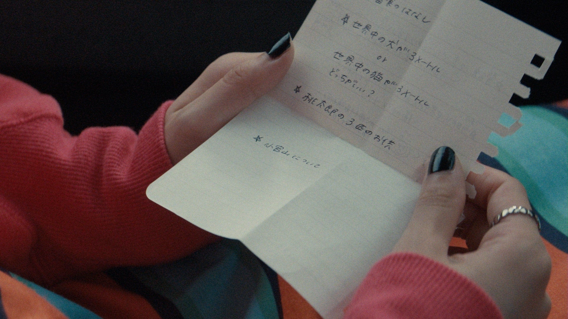 A. 自分の脚本を素晴らしい上質な停滞映像に仕上げていただいて感謝ヘッドです。ご覧になった皆さまには是非AURAな暮らしを楽しんで欲しいです。余談ですが、動画が公開される10月23日は私の祖父の誕生日です。おめでとう。