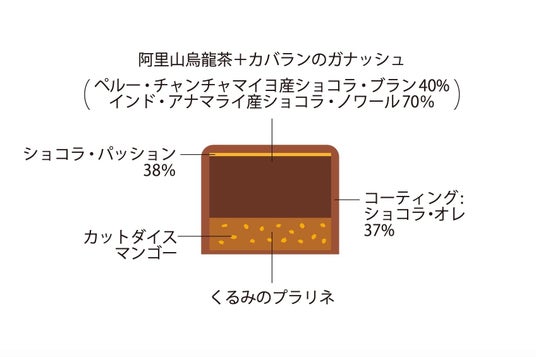No.3 阿里山烏龍茶+カバラン&胡桃プラリネ原文:The rooibos, rhum, ananas est delicatement parfume. Les saveurs chocolat, rhum et ananas sont tres bien dosees.