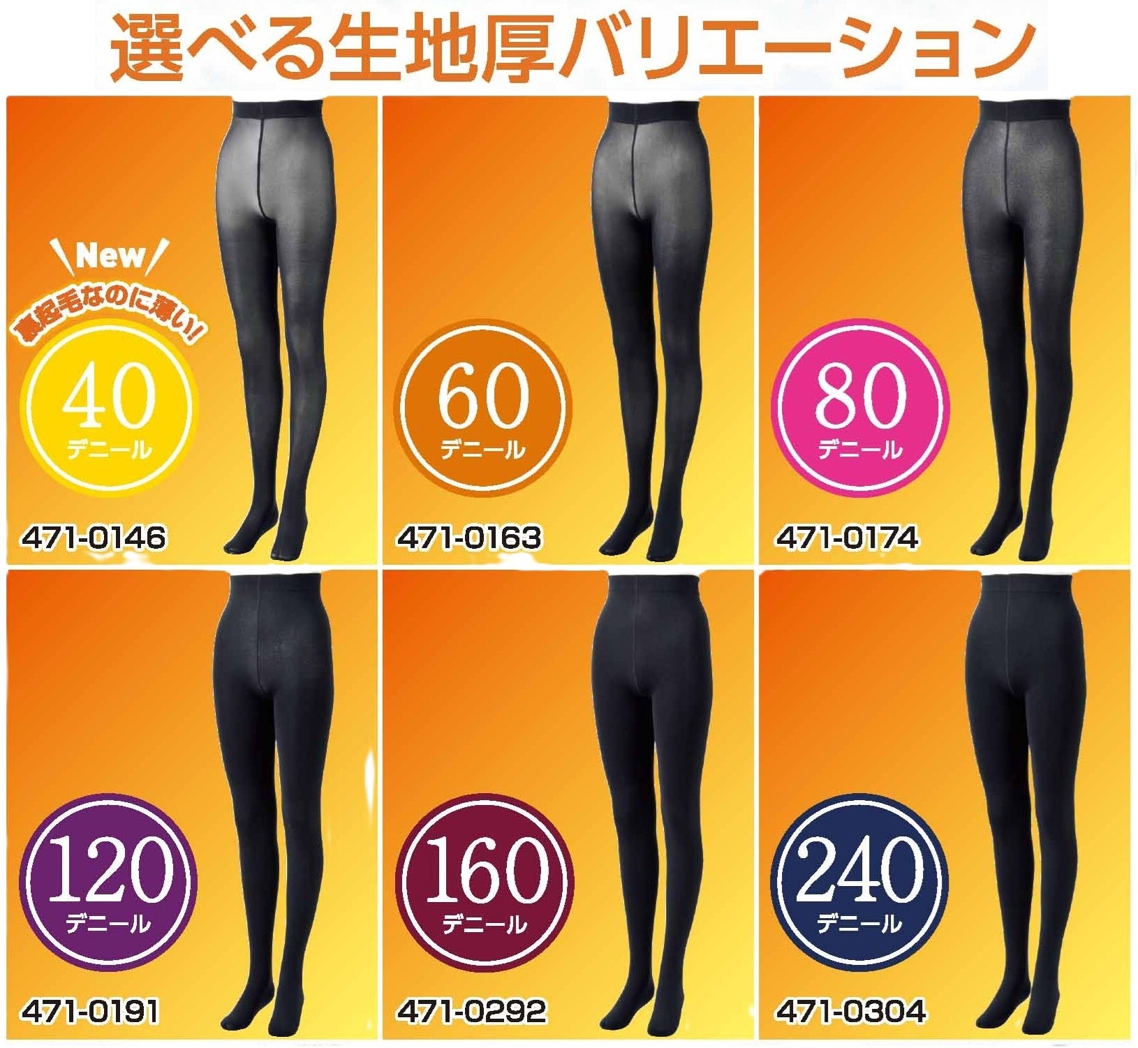 40・60・80・120・160・240デニールと豊富なバリエーションを備え、今年は、シリーズ最薄の裏起毛タイツ・レギンスとして「40デニール」が新登場します。