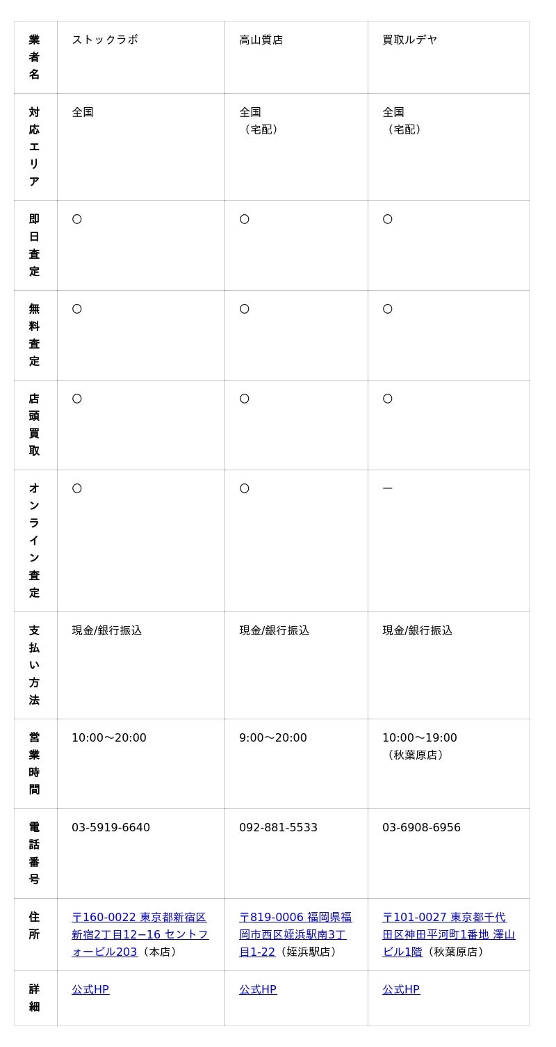 – 宅配や出張買取、LINE査定など買取方法に柔軟性があるか