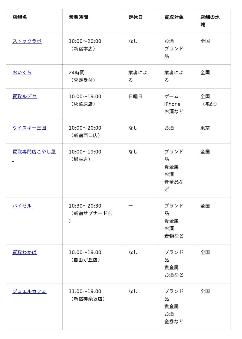 買取実績は響21年花鳥風月105,000円(箱付き)など。新宿店のビルには当店の免税店やバーもあり、中間マージンをカットした高価買取を実現しています。