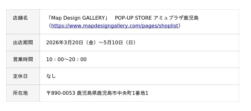■「Map Design GALLERY」 POP-UP STORE アミュプラザ鹿児島 店舗概要