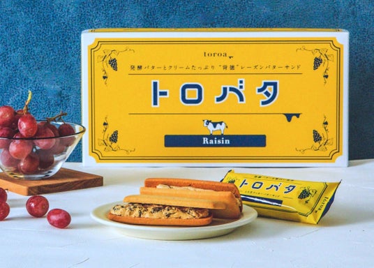背徳のレーズンバターサンド「トロバタ」の中でも一番人気のレーズン味。 ミルクリッチでジューシーなラム漬けレーズン入りのクリームを発酵バターたっぷりの香ばしいクッキーで挟んでいます。