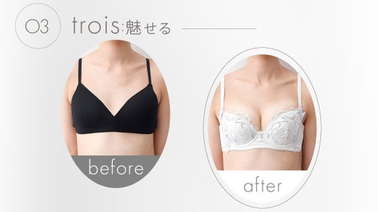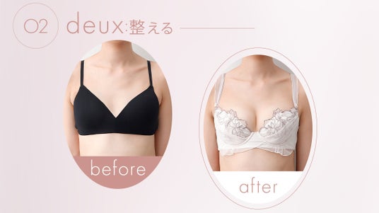 STEP2:deuxで整えたバストをしっかり持ち上げて、ふっくらしたデコルテをメイク。