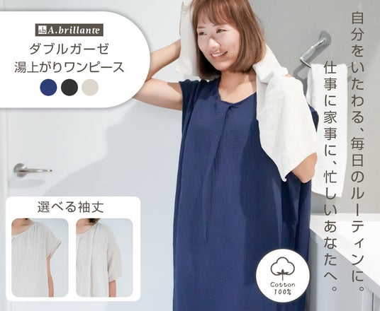 【2025年新発売】“整う時間”をあなたに。自分をいたわる「A.brillante 湯上がりガーゼワンピース」予約販売スタート!