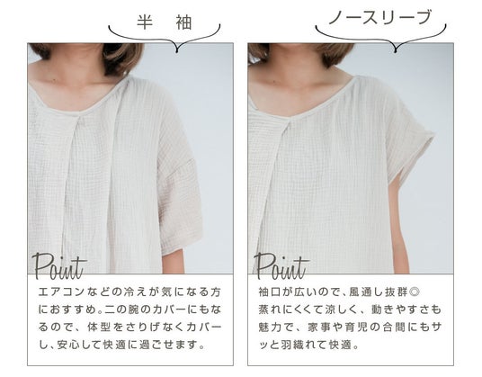 デザインは「半袖」「ノースリーブ」の2タイプからお選びいただけます。