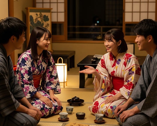 3.浴衣で語る本音の一夜: 夜には「ぶっちゃけ座談会」を開催し、役職や部署に関わらず多様な社員が参加します。ここでは、就活の建前は一切なし。「仕事の失敗談」や「ぶっちゃけトーク」、そして「古窯グループで働く本当の喜び」など、普段聞くことのできないリアルな声に触れることができます。旅館の仕事のやりがい、お客様を「感動」させる舞台裏の努力、そして仕事とプライベートを両立するヒントまで、彼らの生の声を通じて古窯グループの文化を肌で感じることができます。