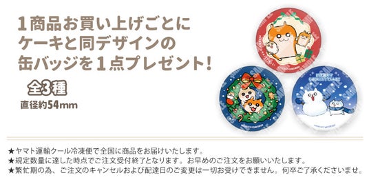 特典缶バッジはお選び頂いたケーキと同じデザインとなります。
