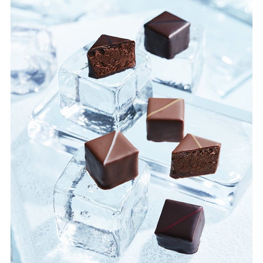 なめらかで軽い口あたりのチョコレートクリームで、コンフィチュールやプラリネを包み、チョコレートでサンドしました。※洋酒不使用