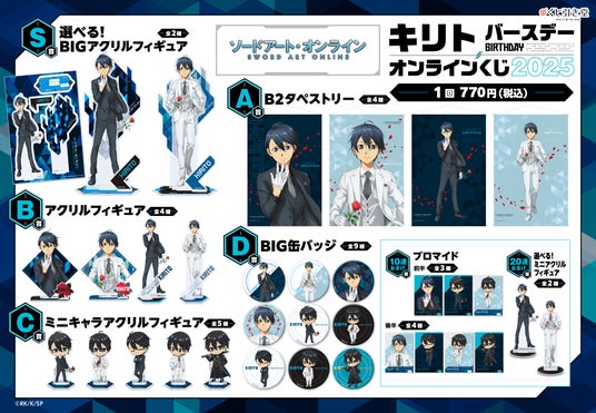 株式会社KADOKAWA(本社:東京都千代田区、取締役 代表執行役社長 CEO:夏野 剛、以下 KADOKAWA)は、運営するオンラインくじサービス「くじ引き堂」において、TVアニメ『ソードアート・オンライン』の豪華賞品が手に入る<TVアニメ『ソードアート・オンライン』キリト バースデーオンラインくじ 2025>を、2025年10月7日(火)12時より販売します。