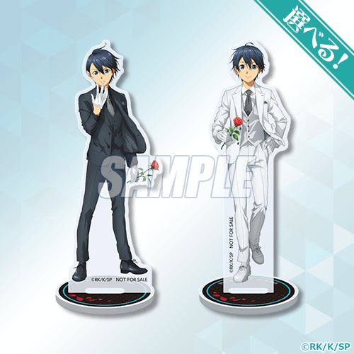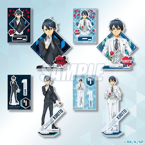 キリトの誕生日を記念して、 ドレスアップした描き下ろしイラストを使用。大満足の豊富なラインナップで展開いたします。選べる!BIGアクリルフィギュアやB2タペストリー、アクリルフィギュアなど、イラストが映えるグッズをぜひチェックしてください。