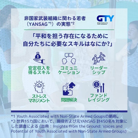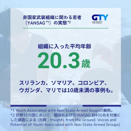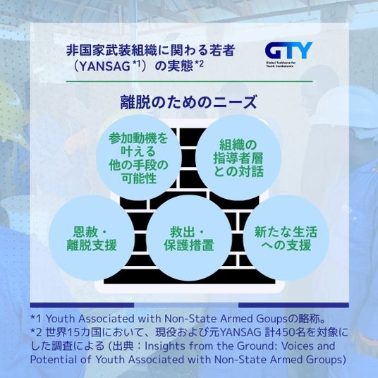 YANSAG(Youth Associated with Non-State Armed Groups)とは、いわゆるテロ組織を含む非国家武装組織に関わっている/関わった18~35歳の若者のことを指します。