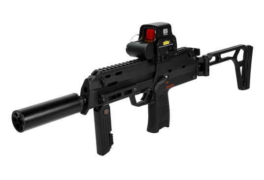 ■東京マルイMP7A1に「スモークトレーサーPRO:ショート」を装着した例。