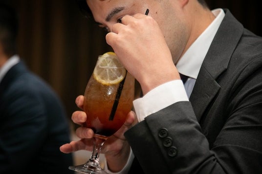 審査員によるテイスティングの様子。カクテルの香りや味わい、プレゼンテーションまでを総合的に評価。