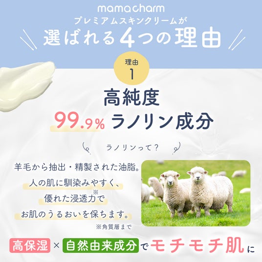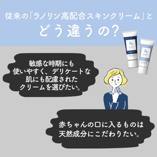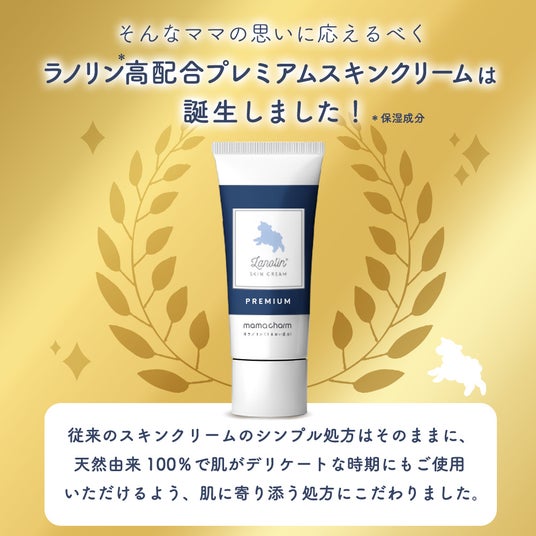「赤ちゃんとママ、どちらにとっても安心できるものを」。そんな想いから生まれたラノリンプレミアムは、デリケートな肌に寄り添い、毎日の授乳をサポートします。