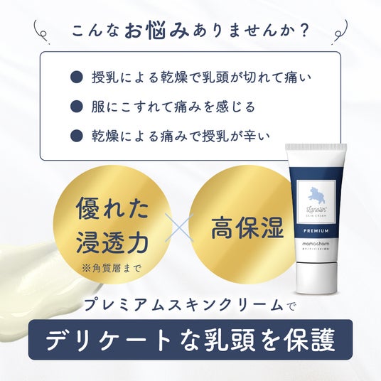 ラノリン高配合のプレミアムなクリームで、デリケートな肌に寄り添い、毎日の授乳をサポート