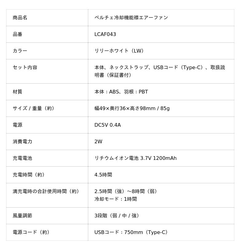 「ペルチェ冷却機能襟エアーファン」LCAF043