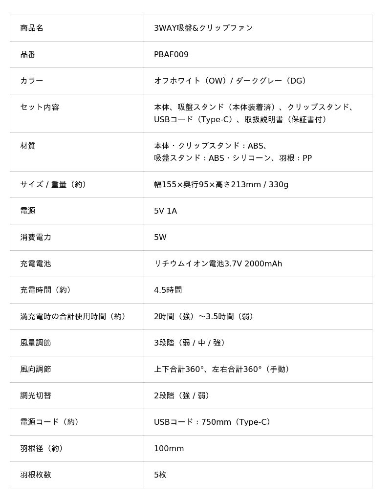 「3WAY吸盤&クリップファン」PBAF009