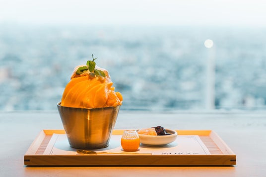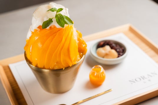 完熟マンゴー×練乳氷で味わう南国スイーツ。 抹茶の香りと餅の食感が出会う、和と韓の涼菓。