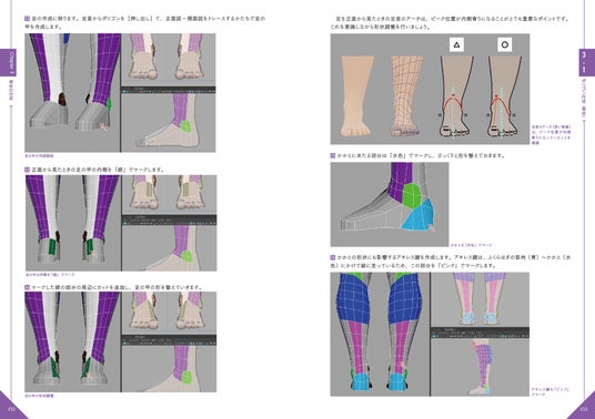 人体の作成では、骨格・筋肉・脂肪などを意識しやすくするために色分けを行うことで、これまで人体モデリングを難しく感じていた方でも、必要なポイントを押さえながら無理なく理解できる内容となっています。
