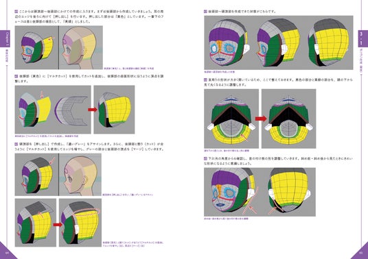 服の作成では、デザイン画の印象をモデルで表現するためのコツも紹介。また、キャラクター制作に欠かせないシェーダー設定についても、イラスト制作の手順に倣い、各要素を一つずつ整理することで、形状づくりから質感・陰影づけに至るまで、立体としての「魅せ方」にまで踏み込んで解説しています。