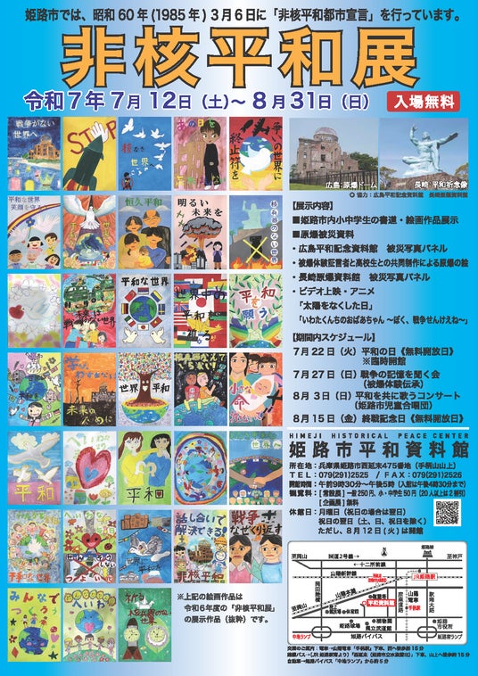 昭和60年3月6日の「非核平和都市宣言」以来、その趣旨を広く市民にアピールするとともに、非核平和について考える機会を提供するため、昭和61年度から「非核平和展」を開催。令和7年度も引き続き開催します。