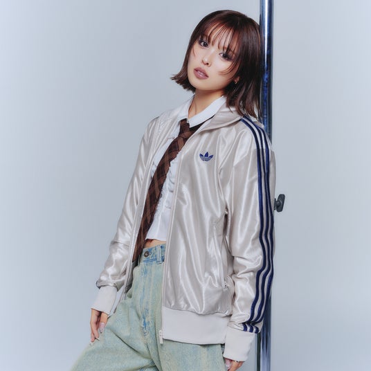90年代の「FIEBIRD」を忠実に復刻したトラックトップ。クラシックなデザインをルーズフィットにアップデートし、素材には艶やかなトリコット生地を採用しました。クリアブラウンはナチュラルで抜け感のあるスタイルを演出しています。どちらも秋冬コーデを格上げする、大人っぽい存在感を放つ商品です。
