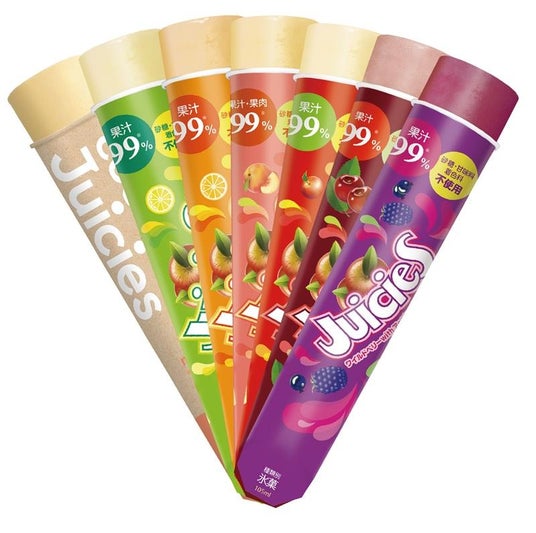 りんごのストレート果汁に、フルーツ本来の甘みと酸味をぎゅっと閉じ込めた「ジューシーズ」。砂糖・着色料・甘味料不使用で、シャリッと爽やかな食感が特徴です。ココナッツマンゴー、チェリー、ピーチなど、豊富なフレーバーを自由に組み合わせて、ひんやりタイムをお楽しみください!