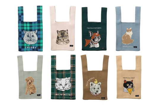 ニットトートバッグ 猫 犬 デザイン マルシェバッ