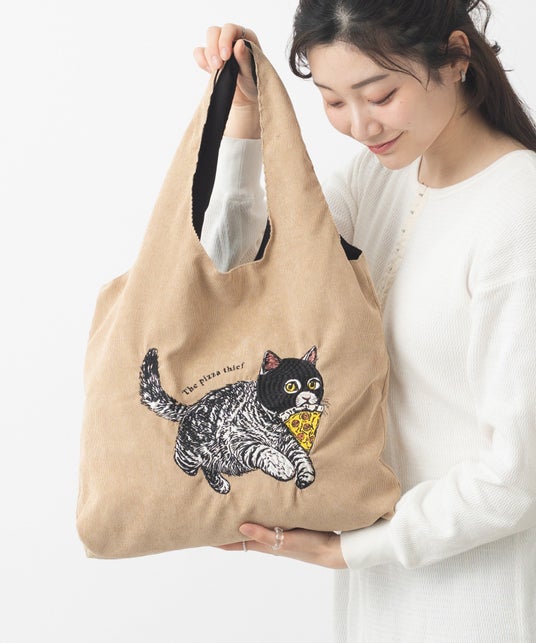 アニマル刺繍 コーデュロイ トートバッグ 犬 ネコ