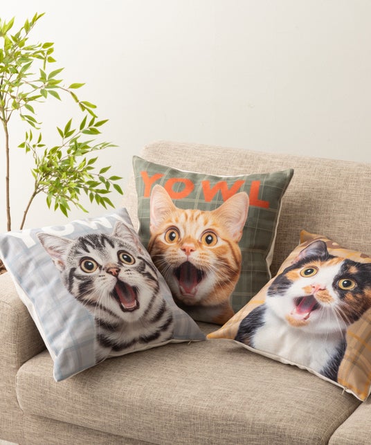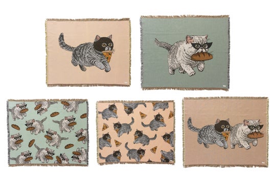 新作の キャットフェイスクッション 泥棒猫柄ジャガード織ラグ など