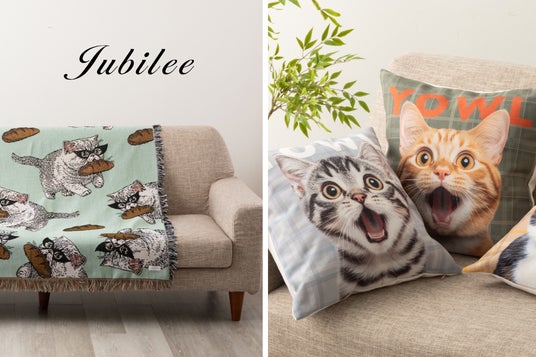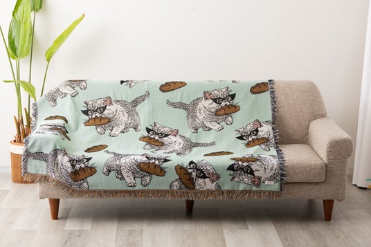 Jubileen 猫犬デザイン ジャガード織 スローケットラグ