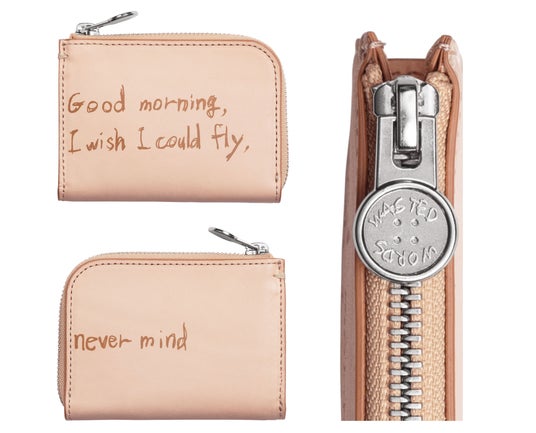 ISSUE#7のコレクションタイトルを両面に渡ってプリントした、特別仕様のL字型ファスナー財布。ナチュラルな風合いが魅力となっているメイン素材の革に、プリントが次第になじんでいく経年変化も楽しみです。